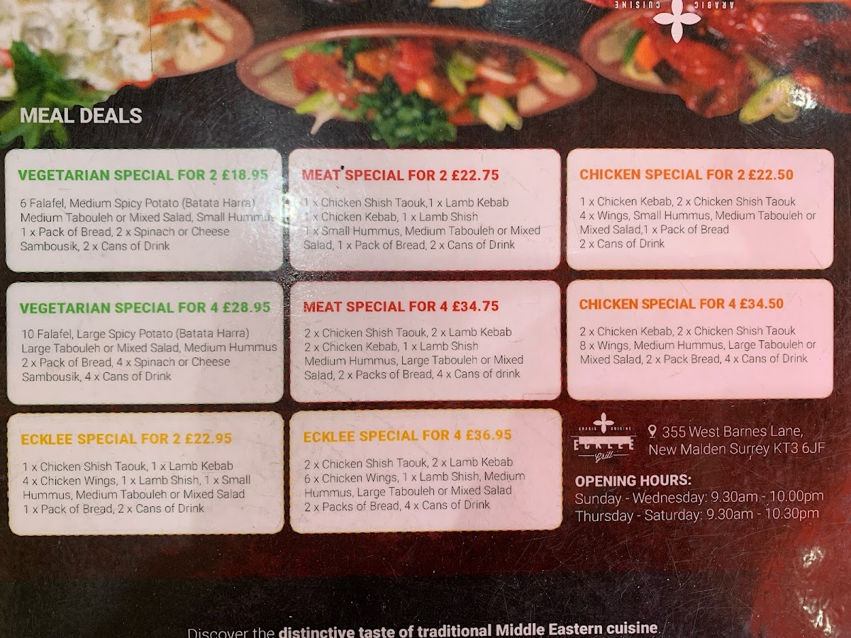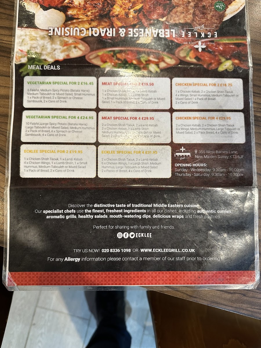 Welcome to Ecklee Grill, a hidden gem nestled in the cozy neighborhood of New Malden. This delightful Lebanese restaurant, located at 355 W Barnes Ln, offers an authentic culinary journey that transports your taste buds straight to the Mediterranean coast. With a strong commitment to quality and freshness, Ecklee Grill is your go-to destination for mouthwatering Lebanese cuisine.